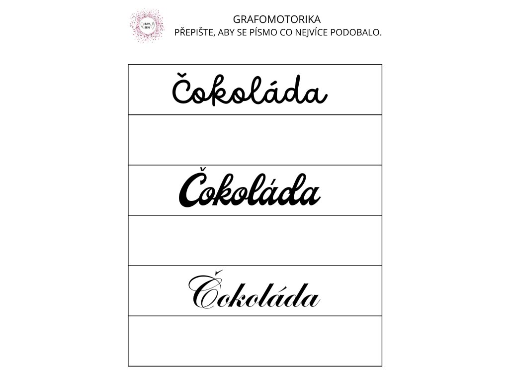 Grafomotorická cvičení – opisování a psaní slov pro rozvoj jemné motoriky a písma.