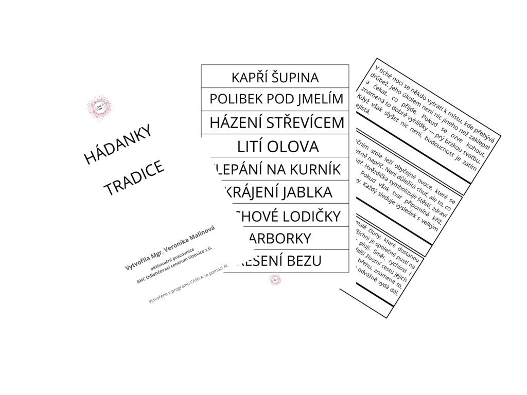 Materiál obsahuje popisy nejznámějších vánočních zvyků formou hádanek. Je ideální pro práci se seniory, dětmi i rodinami, které chtějí přiblížit tradice.