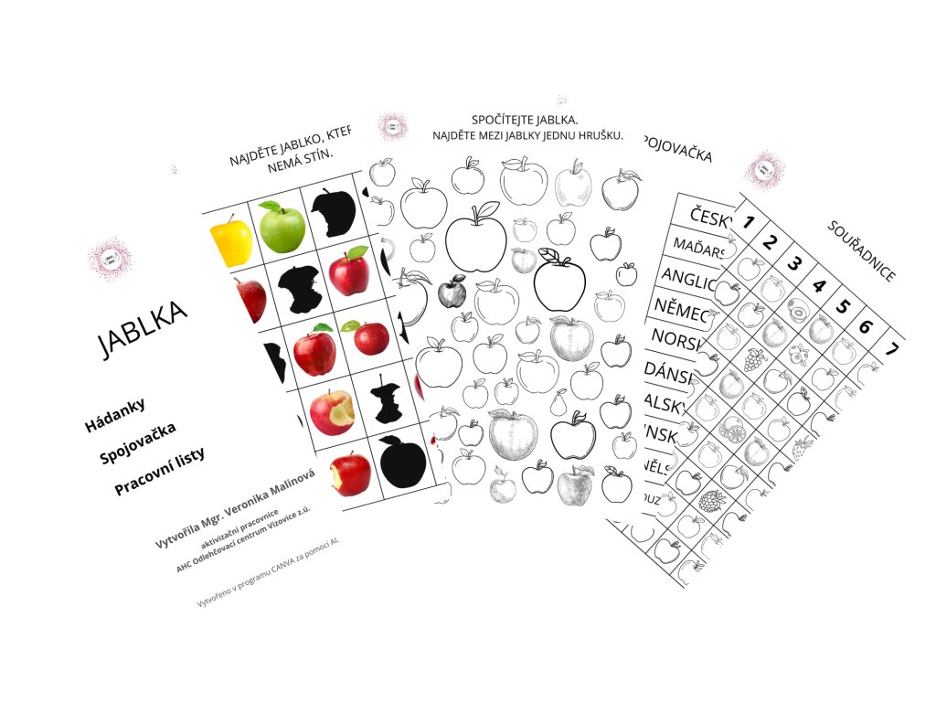Zábavný a edukativní materiál zaměřený na téma jablka, který rozvíjí paměť, pozornost, logické myšlení a jazykové schopnosti.
