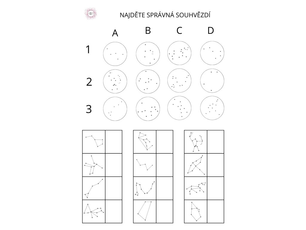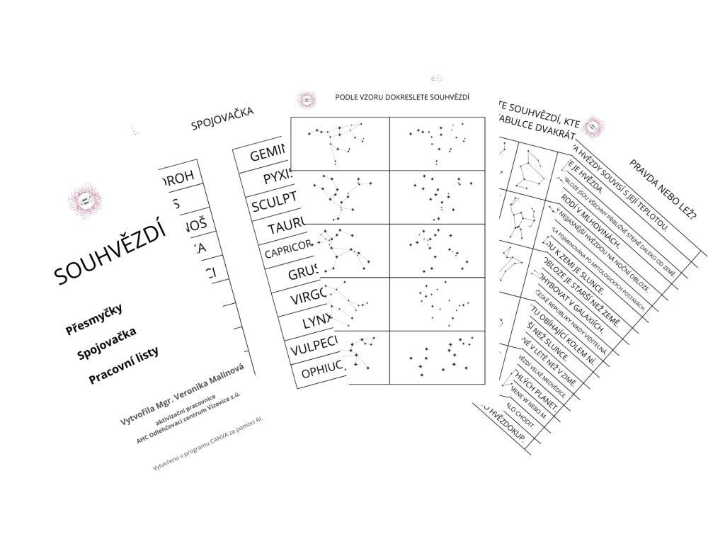 Sada aktivizačních pracovních listů zaměřených na téma hvězd a souhvězdí. Materiál je určen především pro seniory, ale využití najde i při práci s dospělými či staršími dětmi. Podporuje kognitivní funkce, paměť, pozornost a jemnou motoriku hravou a přehlednou formou.