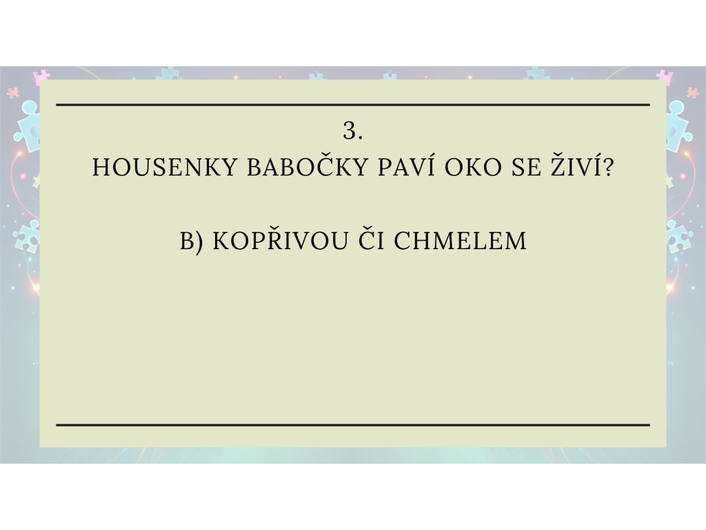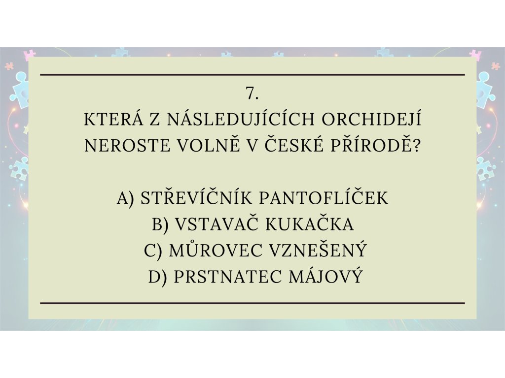 Prezentace je systematicky rozdělena: vždy po 10 otázkách následuje blok se správnými odpověďmi.